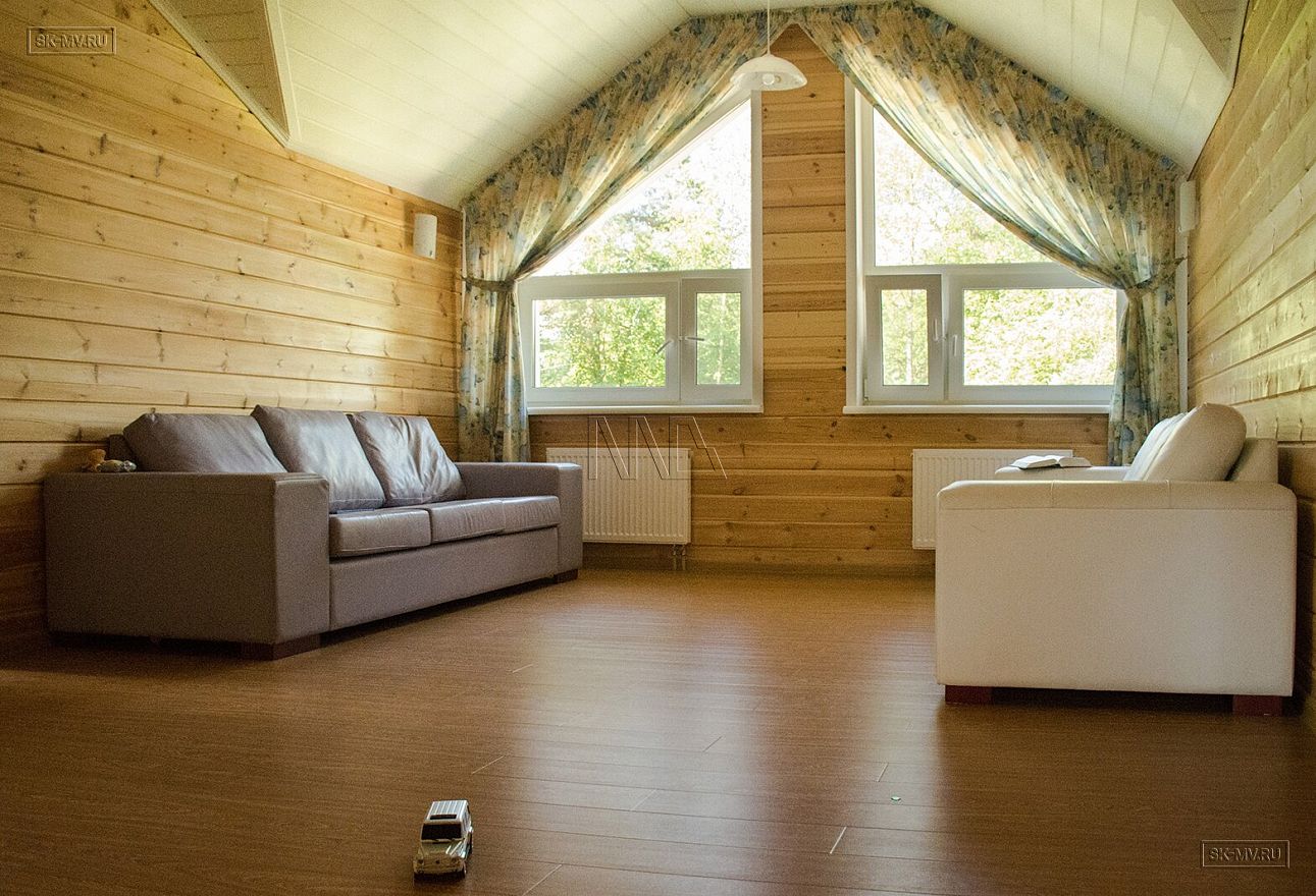 Внутренние несущие стены — каркас из сухой строганной доски 45 × 145 мм.