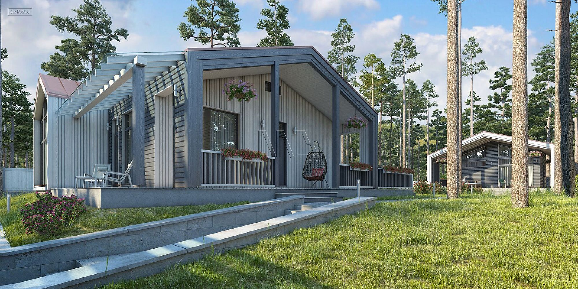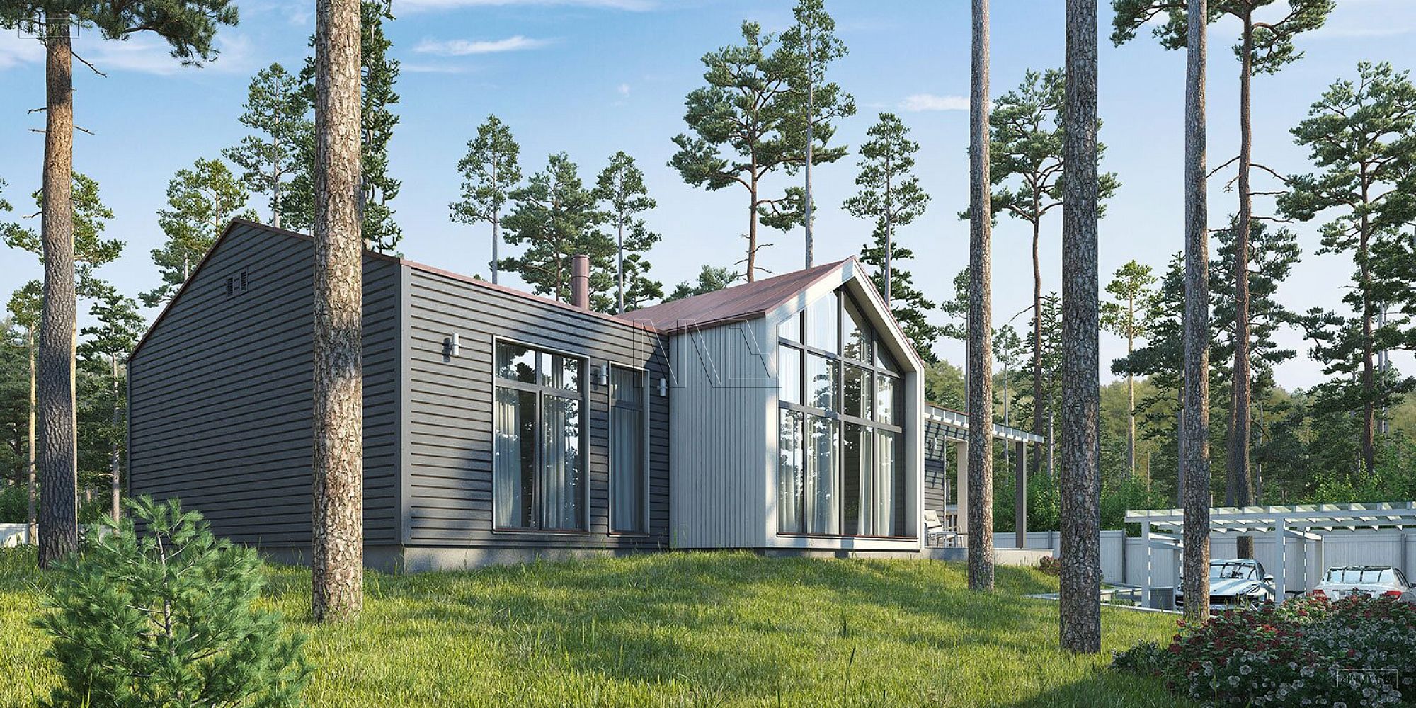 Проект выполнен в стиле типичной скандинавской архитектуры, что выражено в следующих деталях: