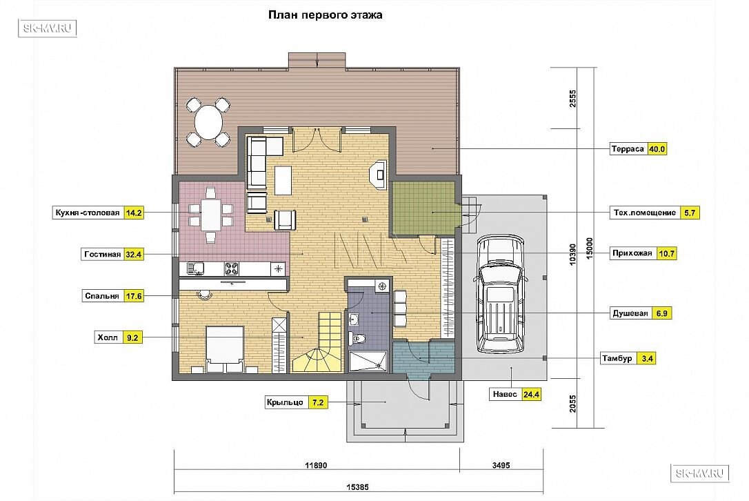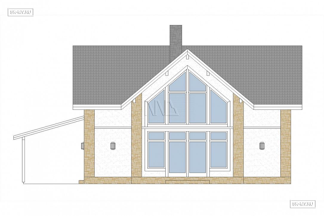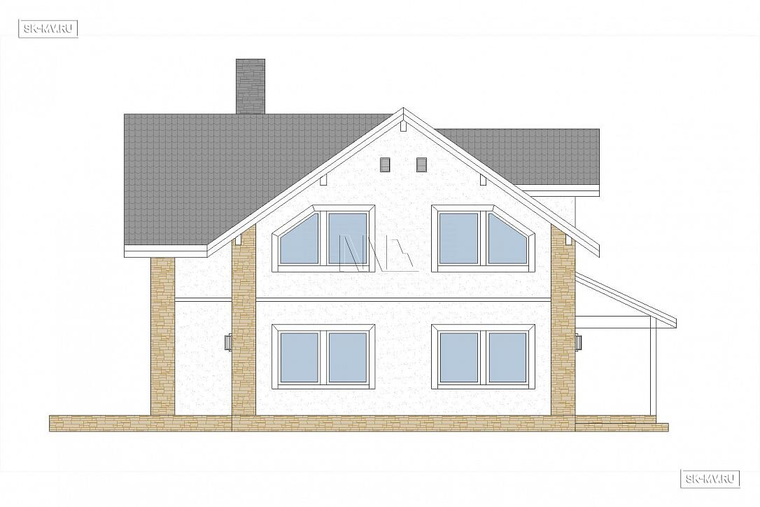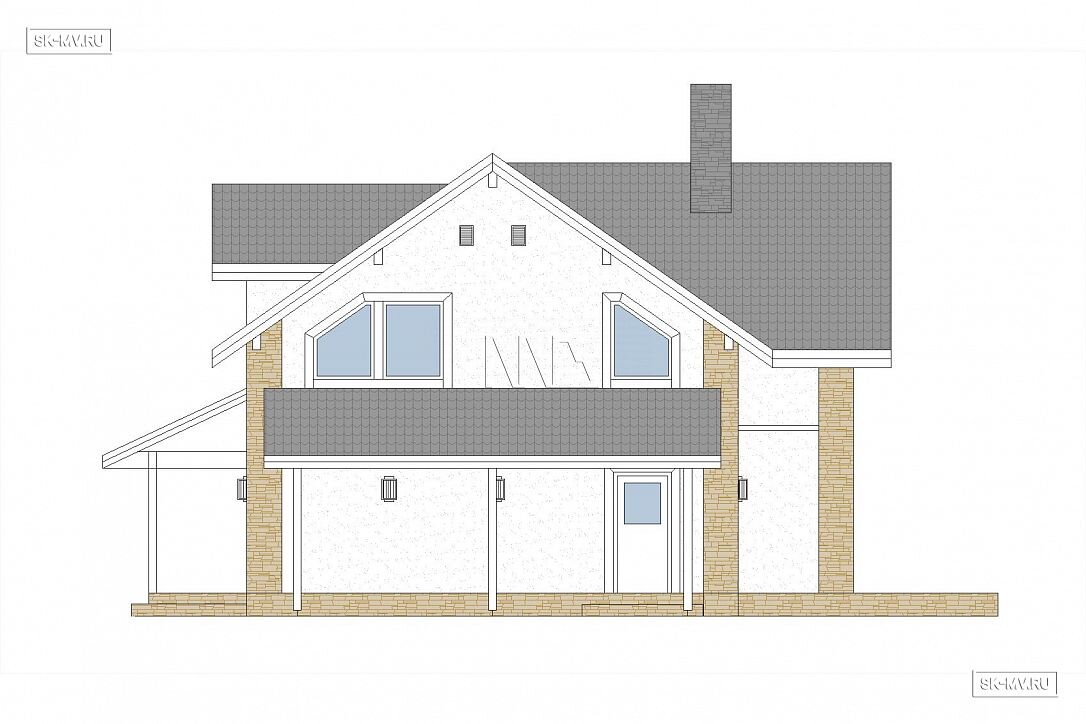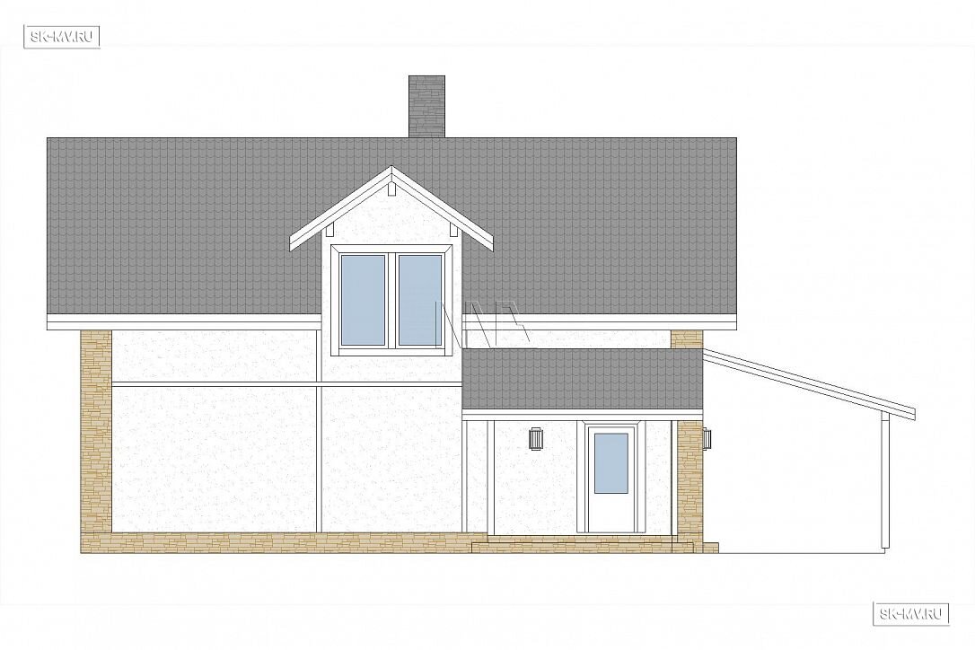 Стоимость строительства дома под ключ представлена в таблице ниже с указанием материала строительства и вариантов фасадной отделки. Кроме этого цена будет зависеть от выбранных вариантов адаптации проекта: перенести крыльцо, увеличить террасу или закрыть ее навесом, сориентировать дом по сторонам света или отзеркалить фасад. По подобным работам просим обращаться к нашим специалистам в отдел продаж. Изучить пакеты адаптации >>>.