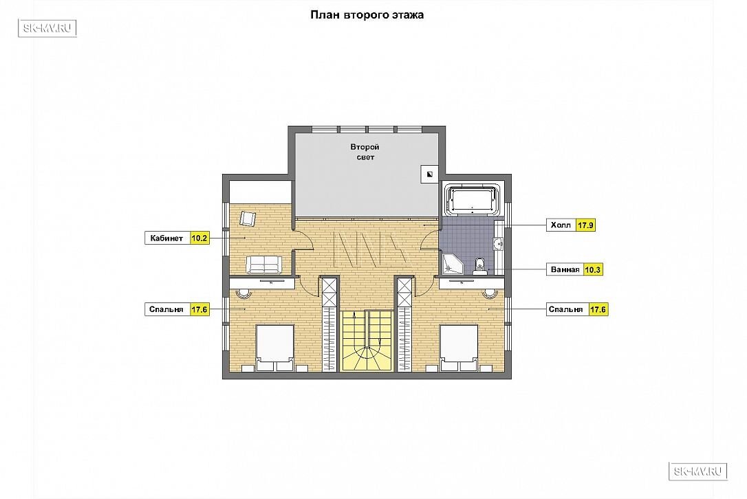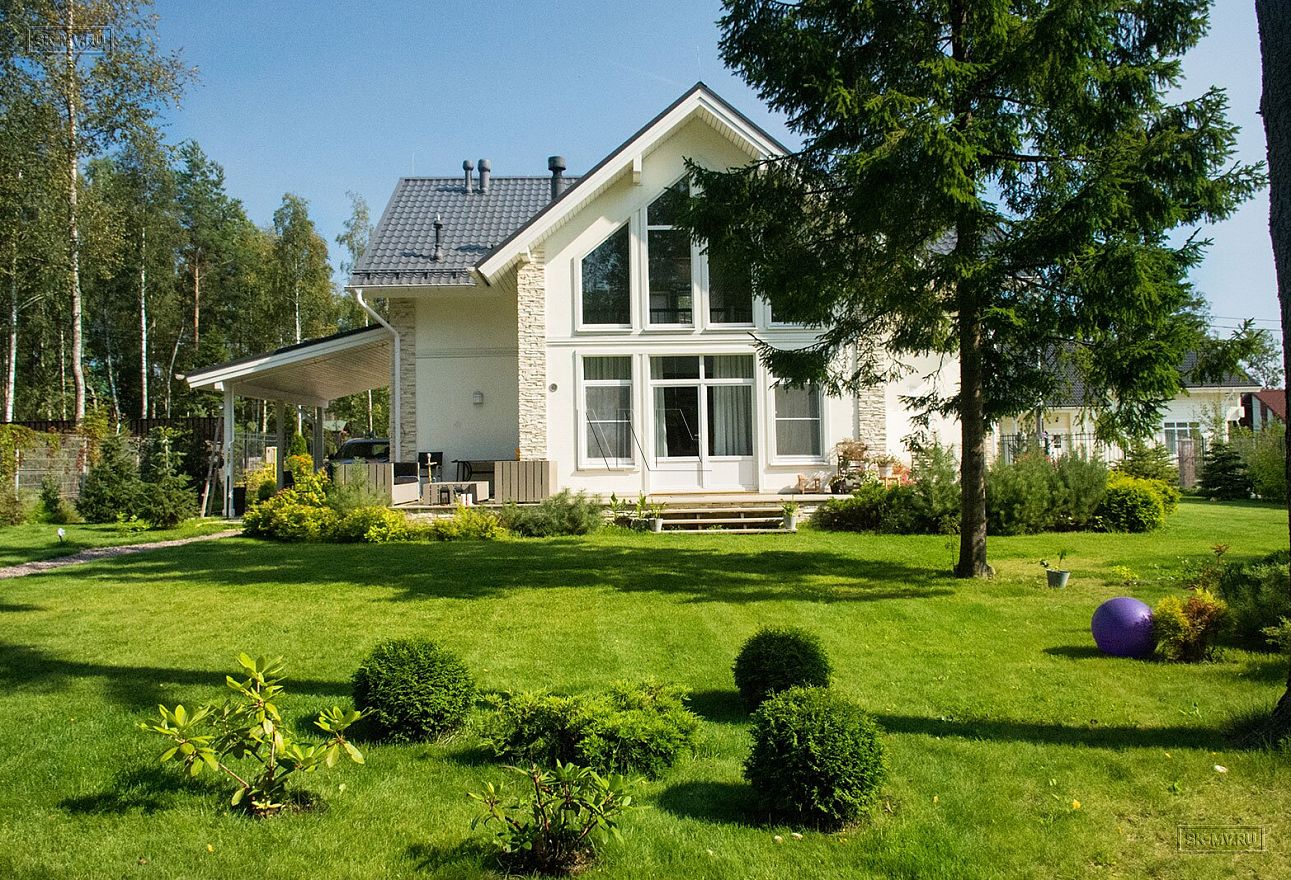 Планировки дома объединила несколько самых важных помещений в доме. Во-первых, большая гостиная со вторым светом обычно залита солнечными лучами. Во-вторых, в доме четыре спальни, одна из которых расположена на первом этаже (для родителей или няни), остальные — на мансардном этаже.
