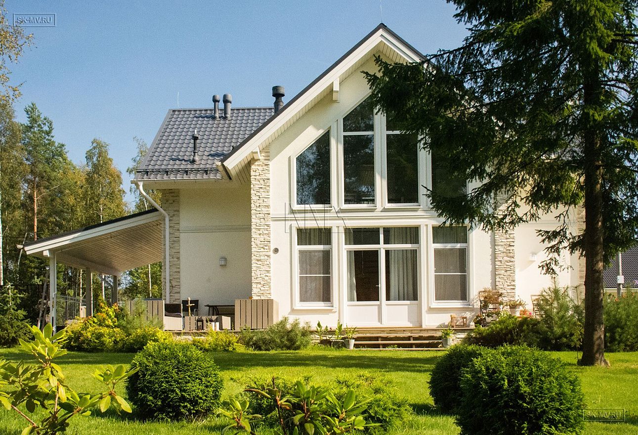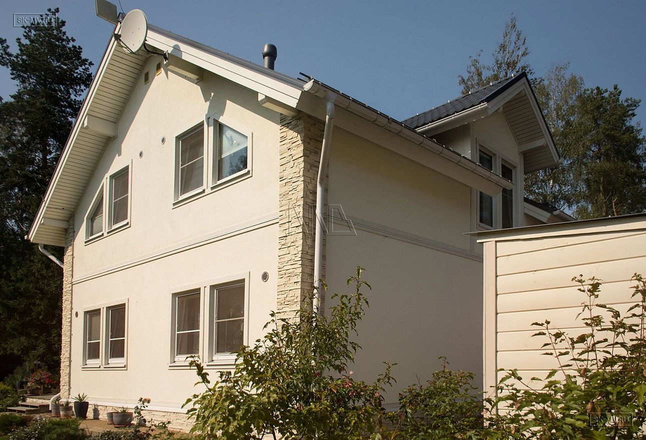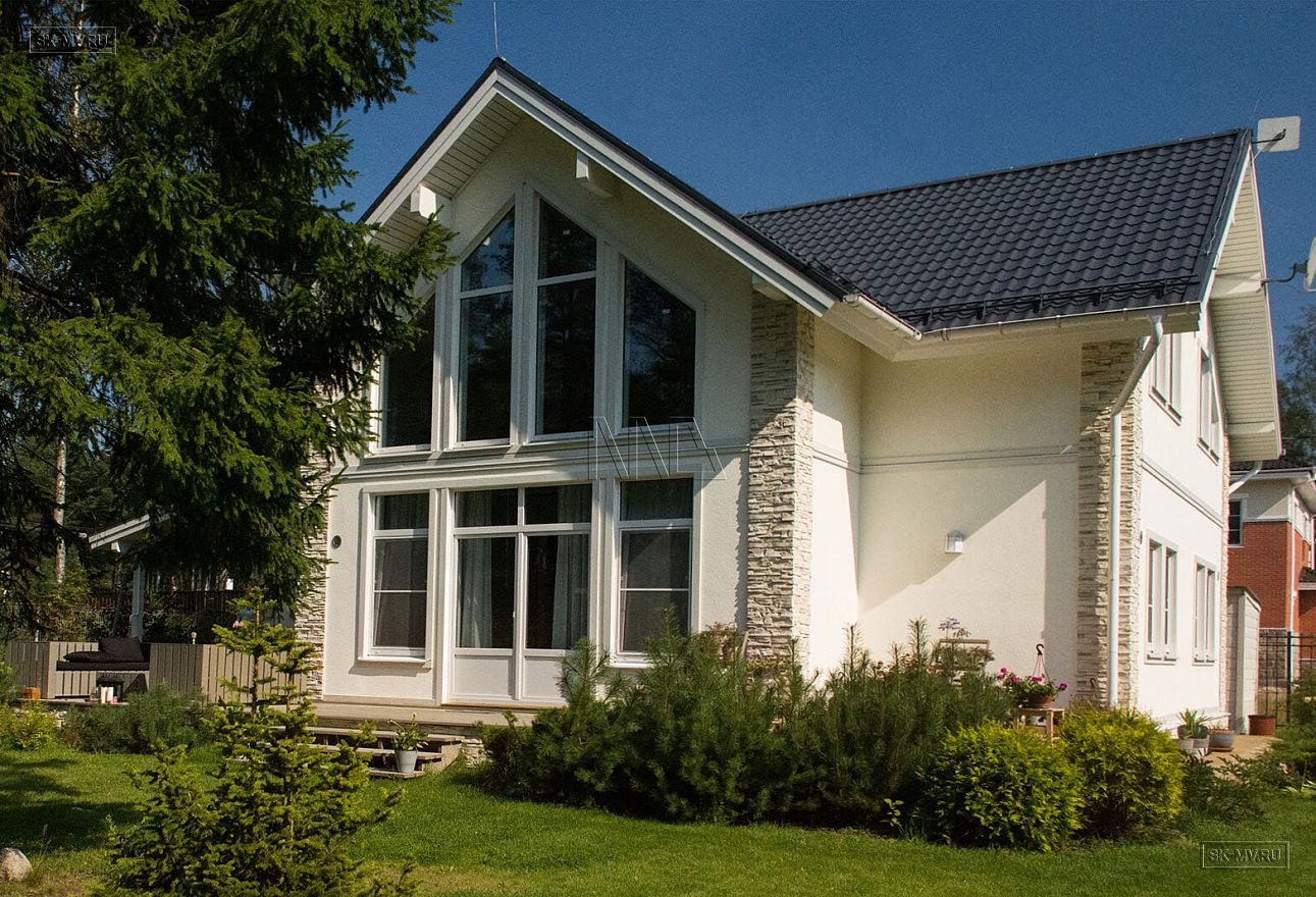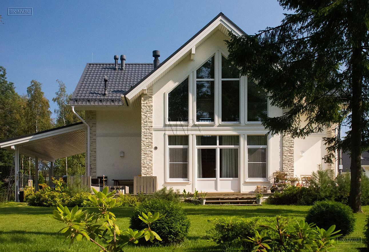 Дом можно построить и с другими вариантами фасадной отделки, возможные комбинации для фасада представлены в табличке с ценами на строительство такого дома под ключ. Постройку мы ведем используя три технологии: каркас по методу «платформа», газобетонный и кирпичный дом.