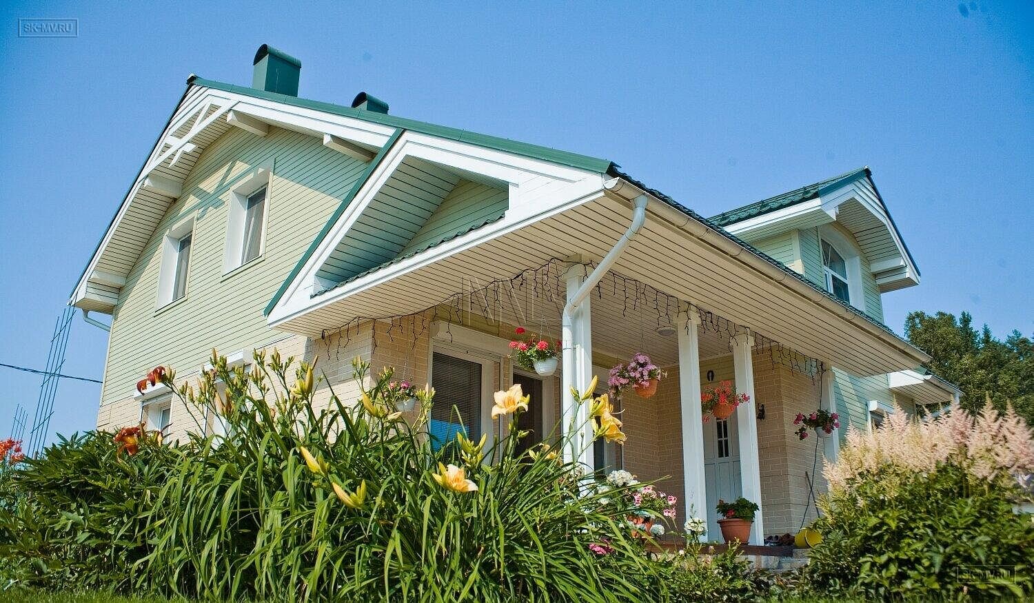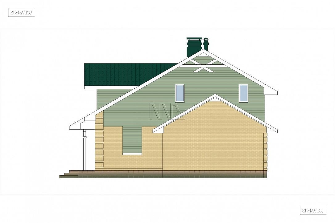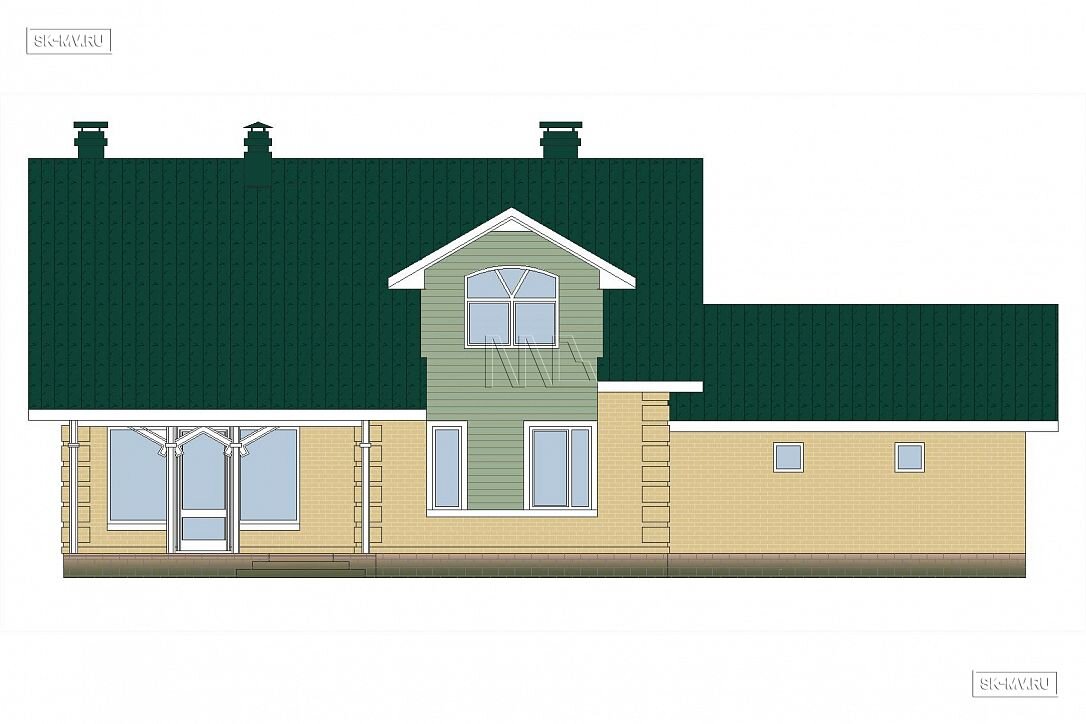 Проект загородного дома с навесом для автомобиля «Озерное 2» площадью чуть больше 170 кв.м выделяется среди современных каркасных и газобетонных домов. Выделяется не только красивым фасадом и яркой зеленой кровлей, но и планировочными решениями.