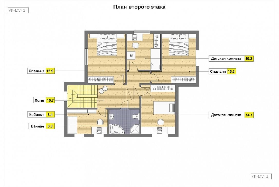 Но помимо стилистики немецкий рационализм присутствует и в планировке. В доме четыре спальни и рабочий кабинет. Светлая гостиная с камином в центе для приема гостей, разделенная с кухней. Небольшая площадь этого коттеджа организована очень комфортно и по-немецки правильно.