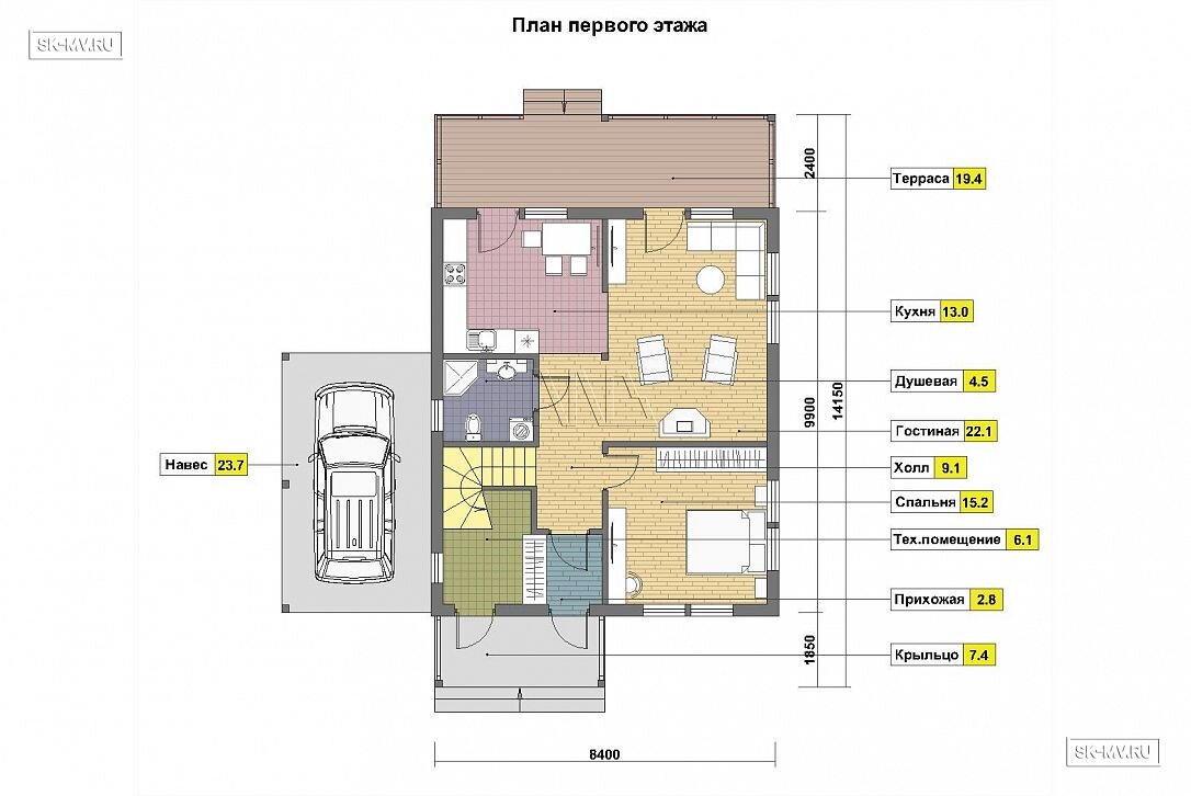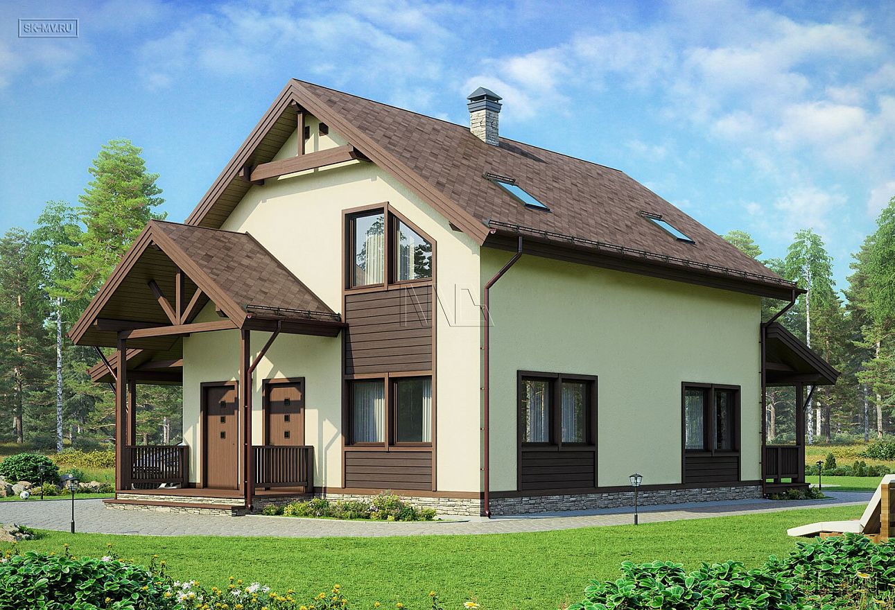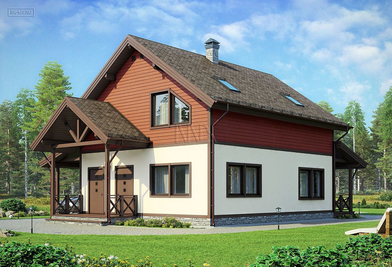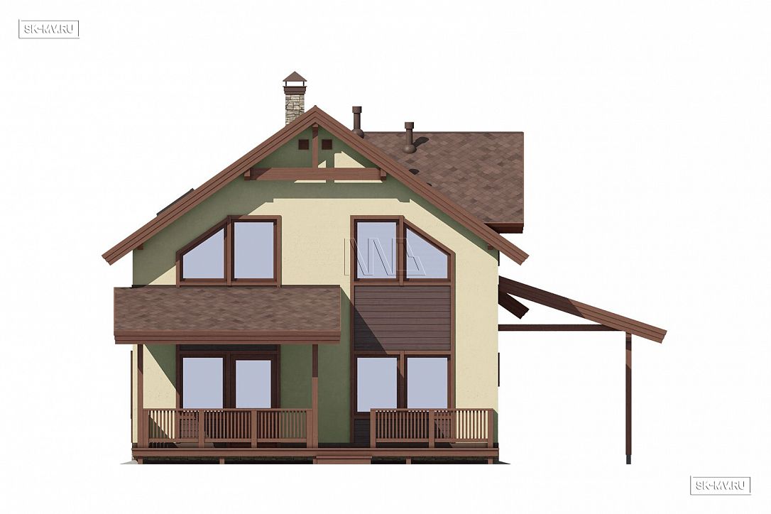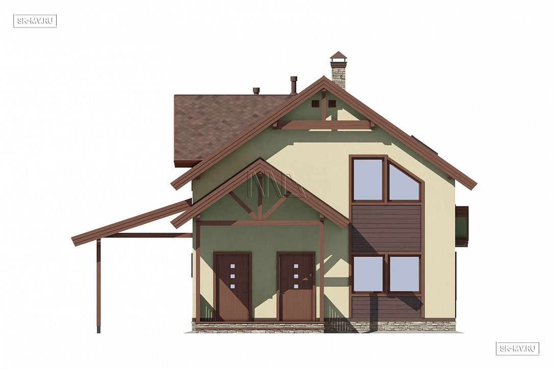 Проект «Пегелево» небольшого красивого двухэтажного дома площадью до 150 кв.м. с навесом для одного автомобиля — хорошее решение для строительства загородного коттеджа для молодой семьи с детьми. Проект «Пегелево» является видоизмененным аналогом проекта «МВ 1».