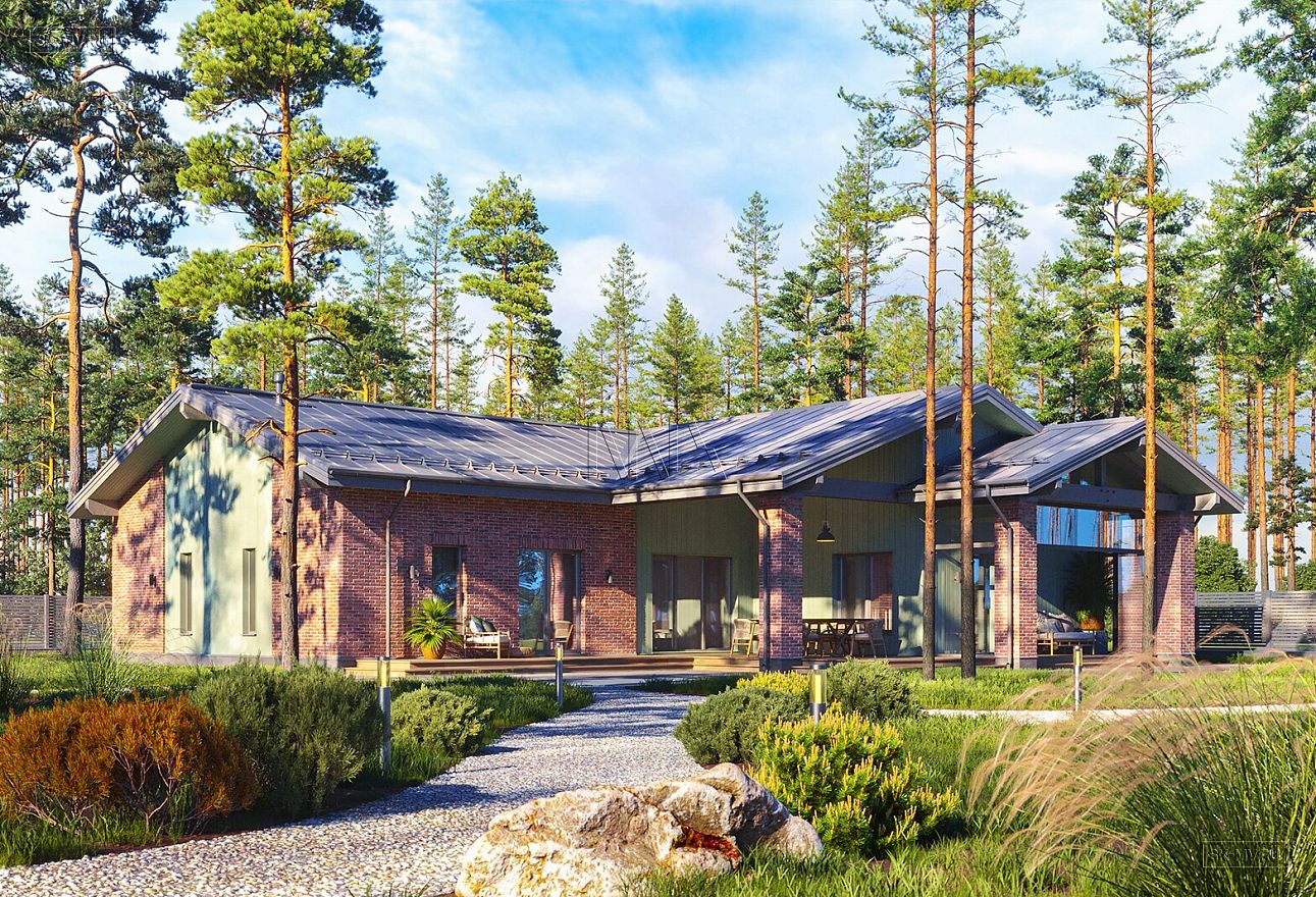 Проект одноэтажного дома «Пески» площадью 241,15 кв.м в скандинавском стиле — современное жилое пространство, безупречно организованное с точки зрения комфорта и инсоляции помещений.