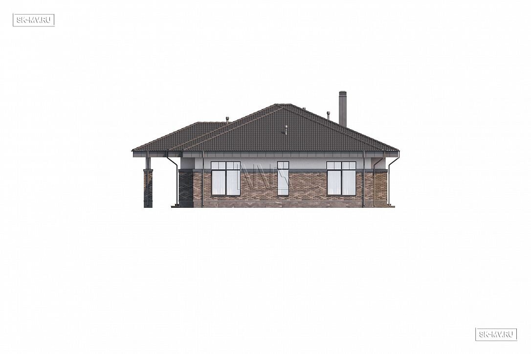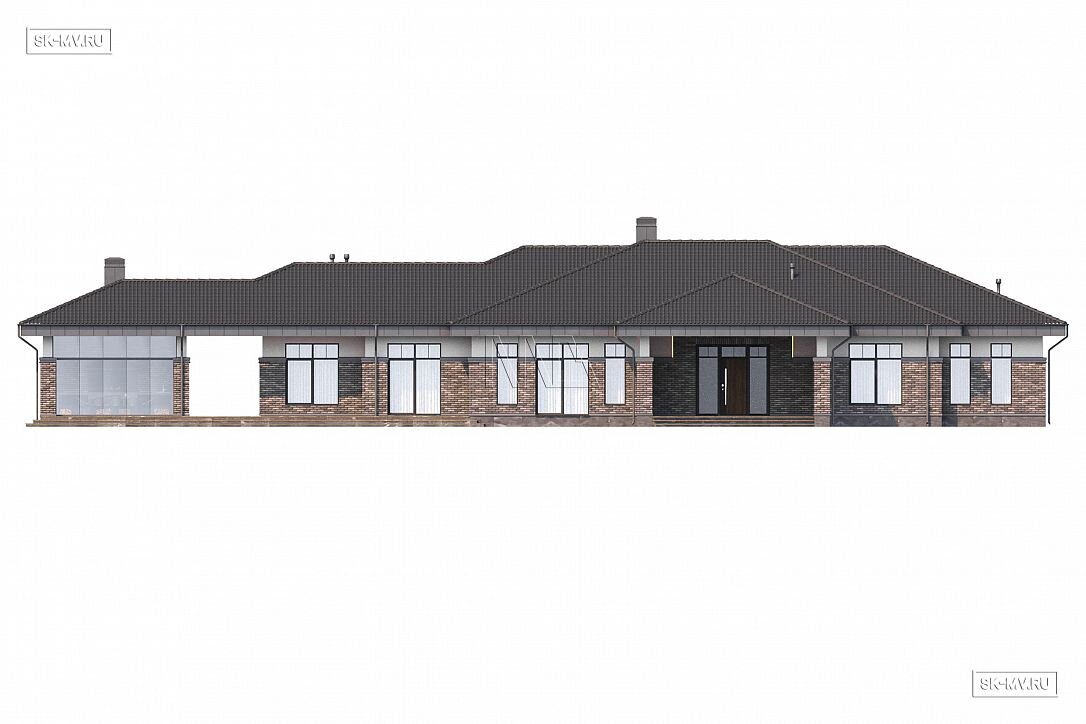 Этот комфортабельный дом, фасады которого украшает частичная облицовка кирпичом и высокие окна, будет особенно выгодно смотреться на открытом участке с эстетичным ландшафтным дизайном.