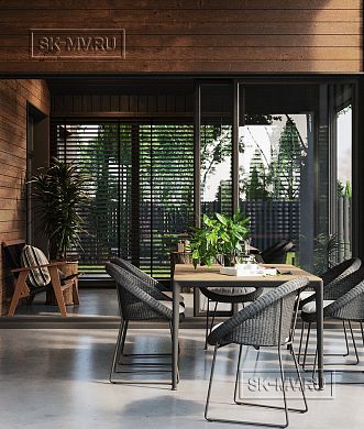 Под широким фронтонным свесом кровли лицевого фасада спрятан консольный балкон и частично укрыта довольно просторная открытая терраса для летнего отдыха. Пространство кухни-столовой-гостиной легко объединить с террасой, просто открыв портальные раздвижные двери.