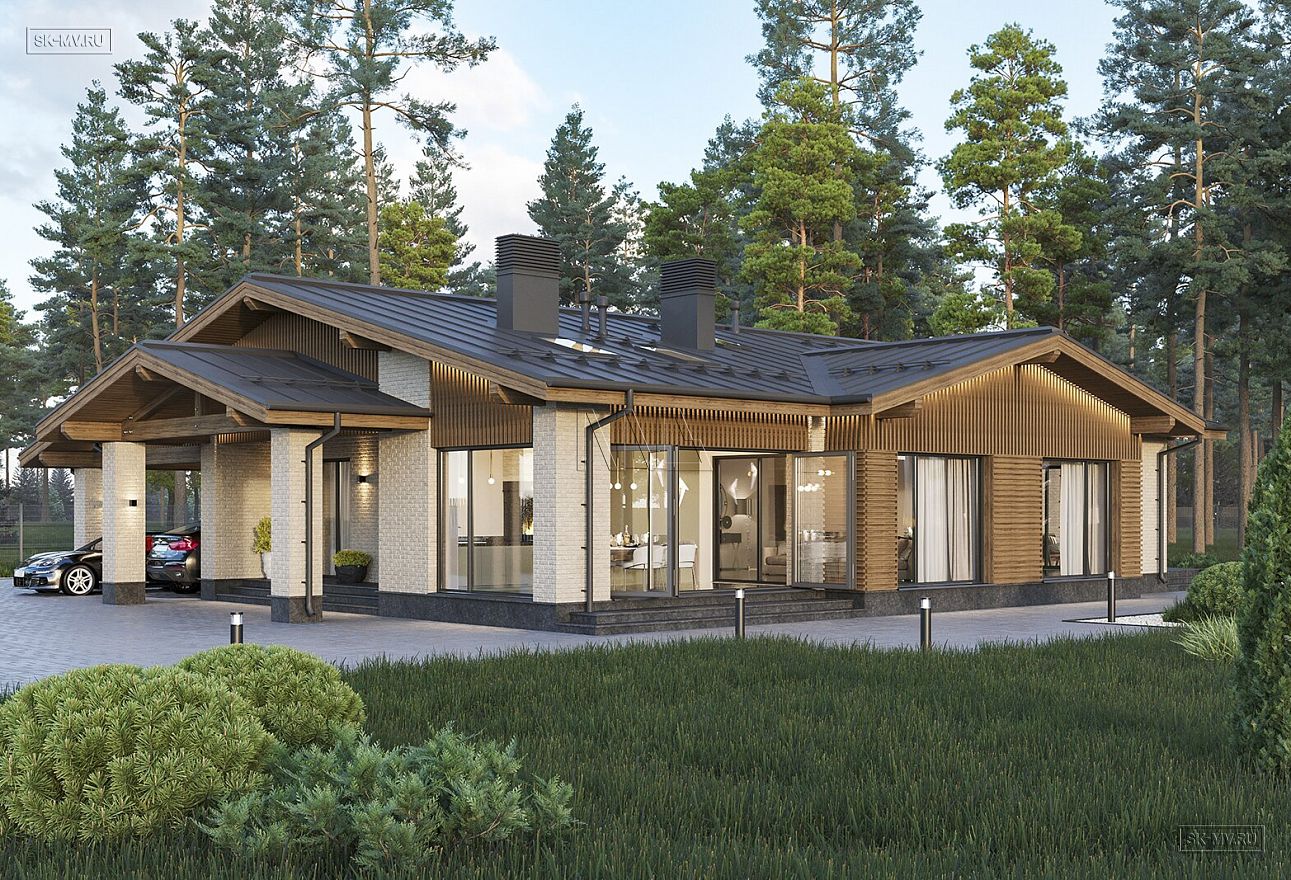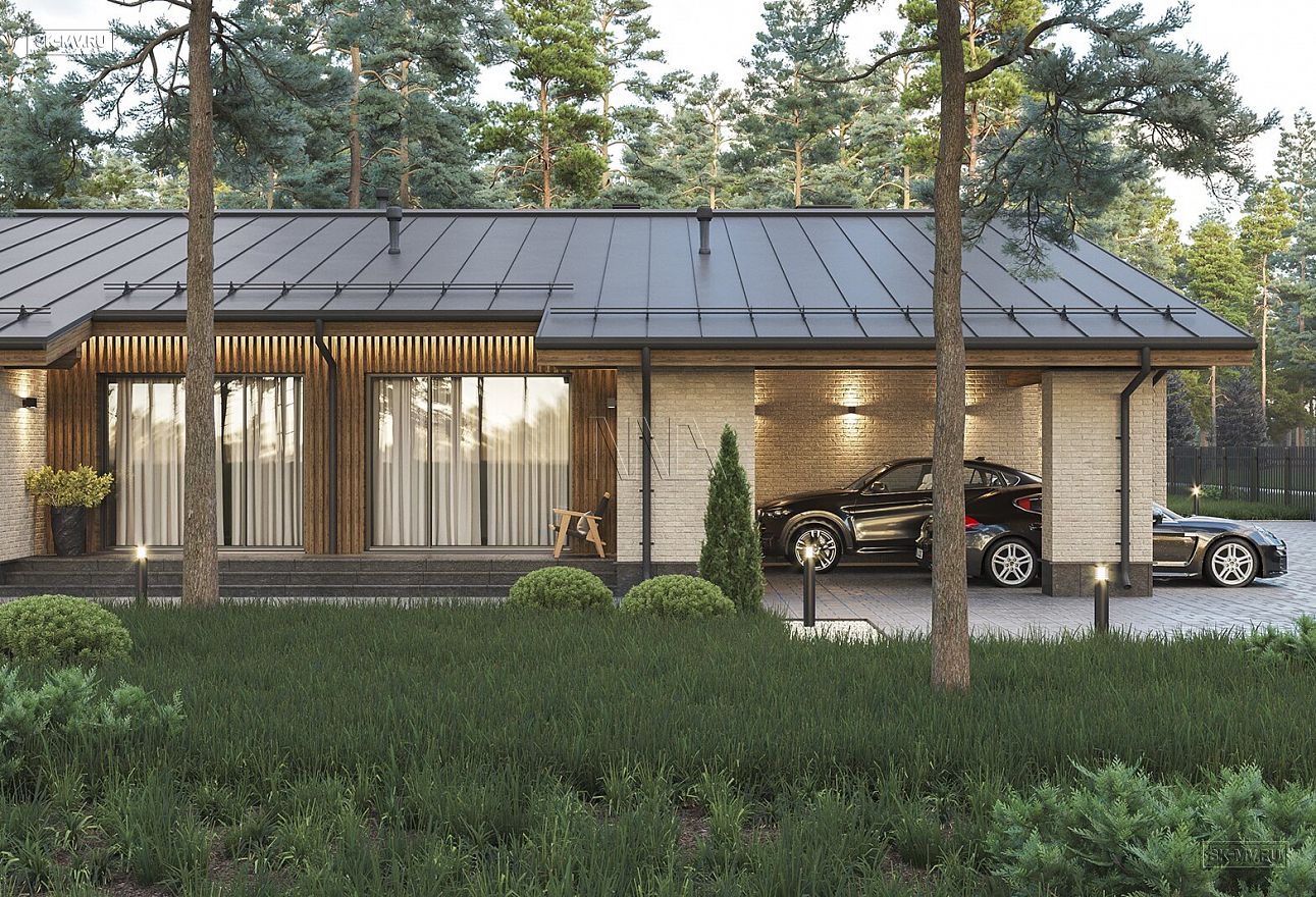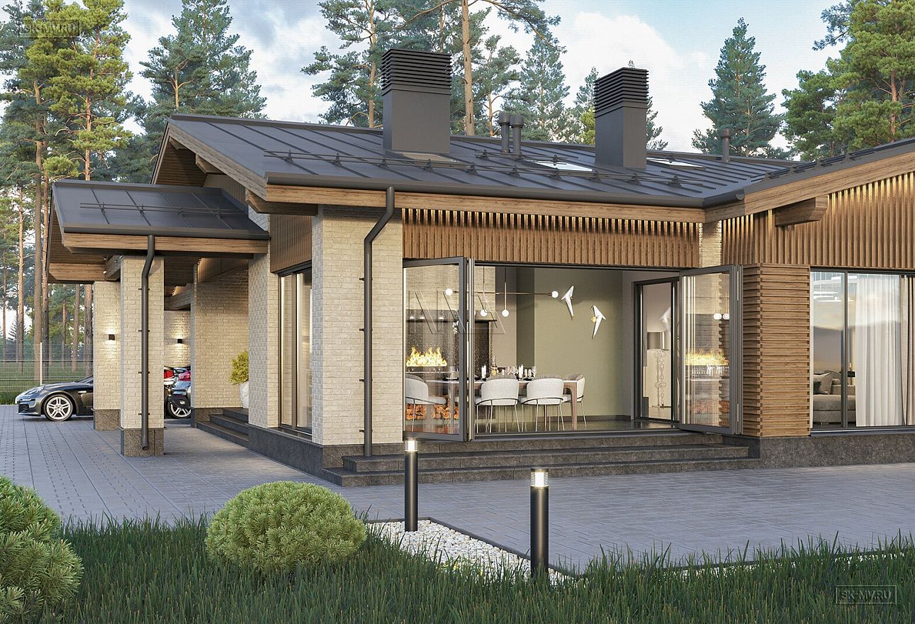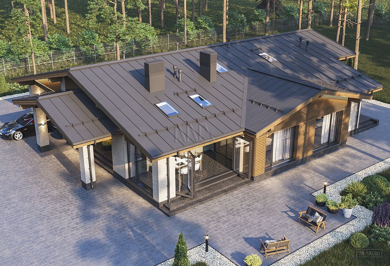 Проект «Рощино 20» — это проект современного одноэтажного загородного дома с четырьмя спальнями и теплой зоной барбекю. Площадь дома — 281,08 кв.м.