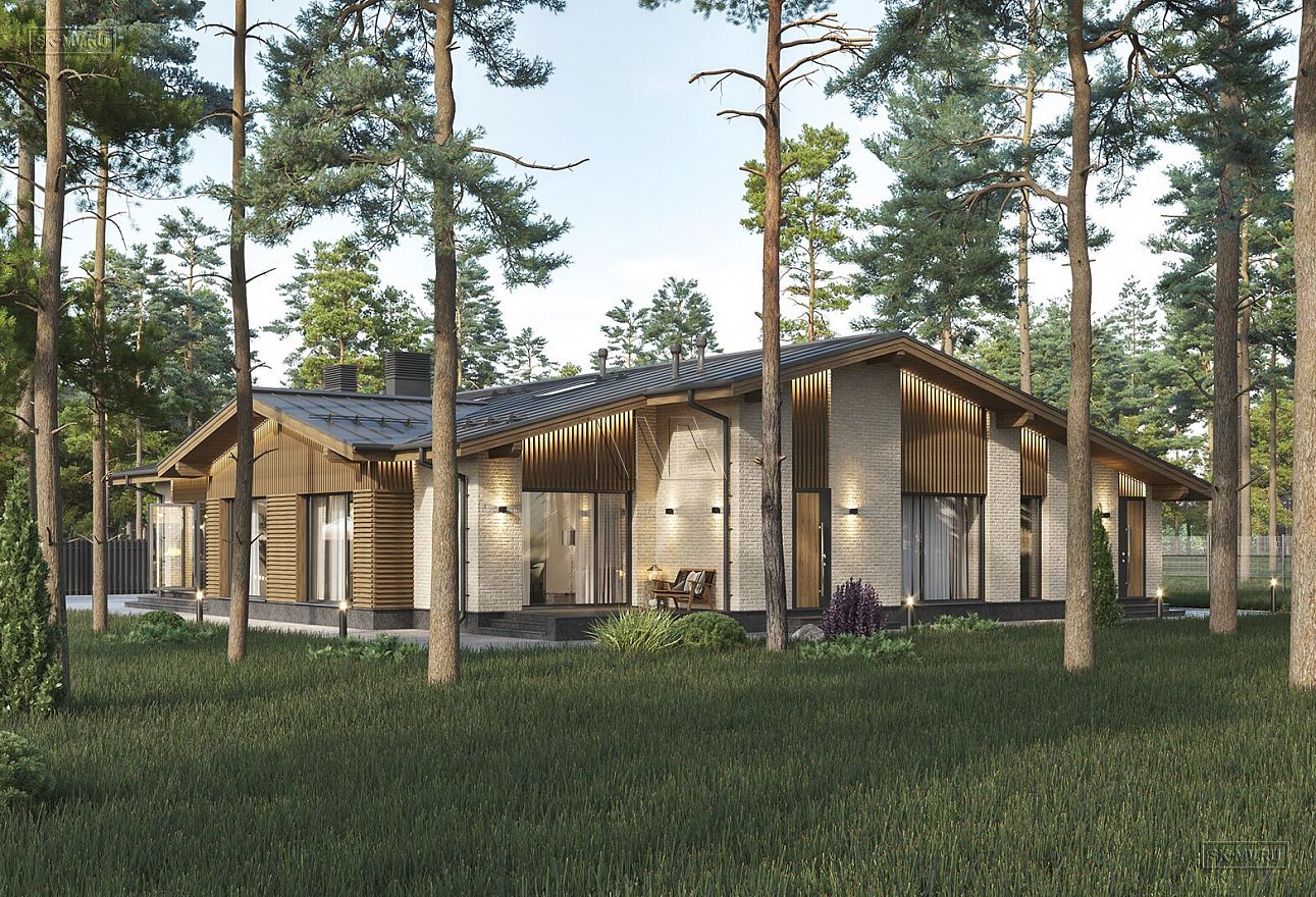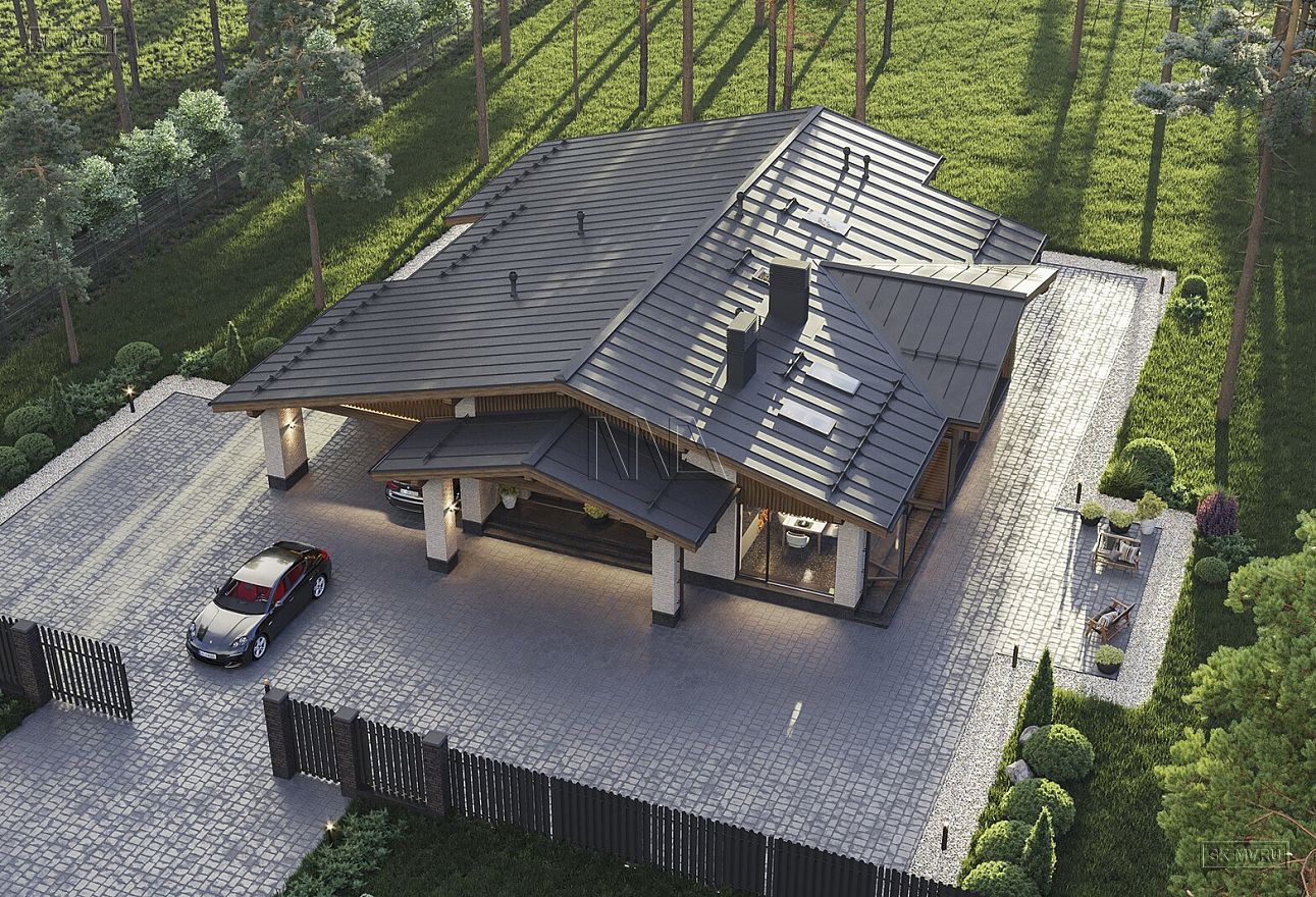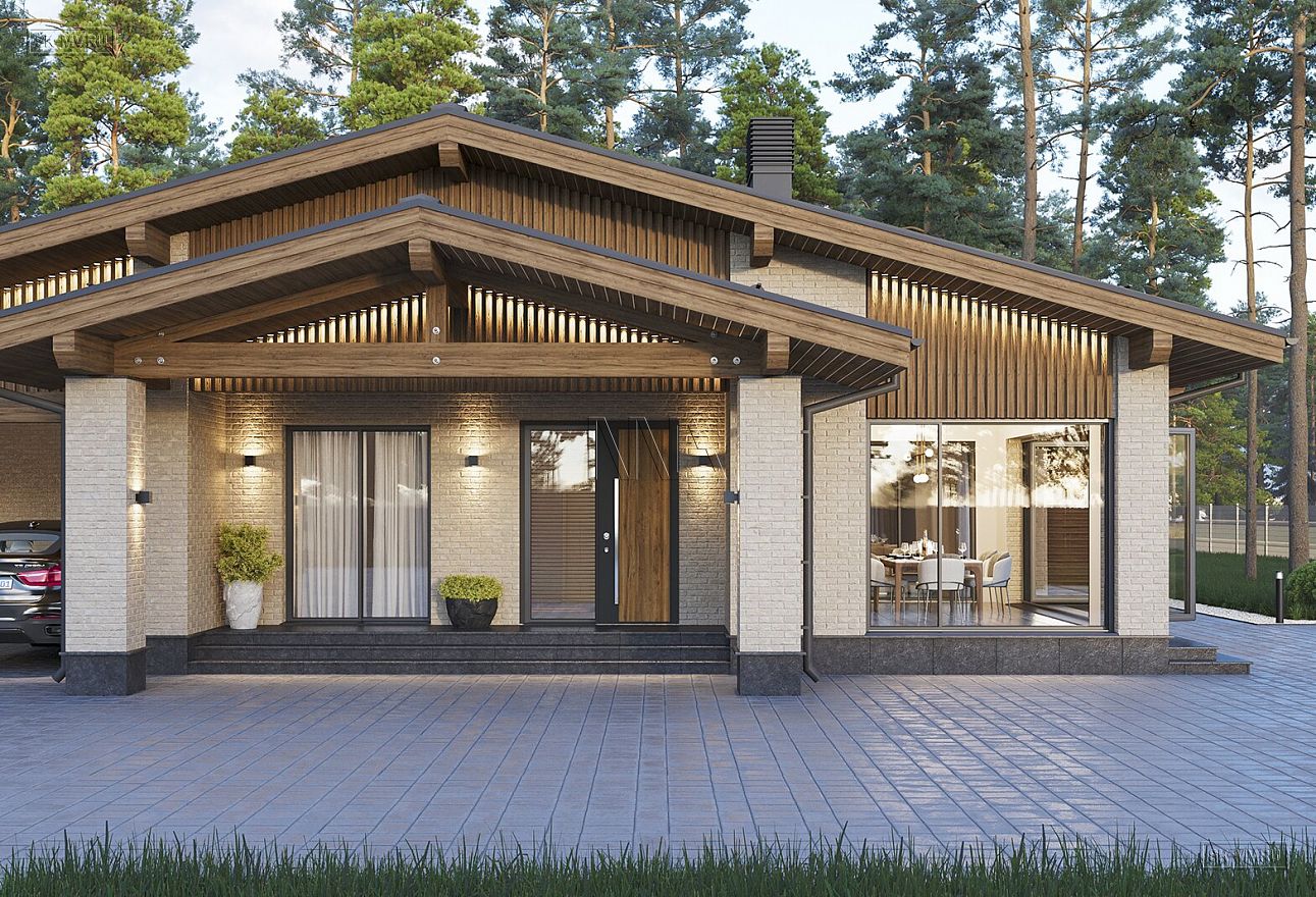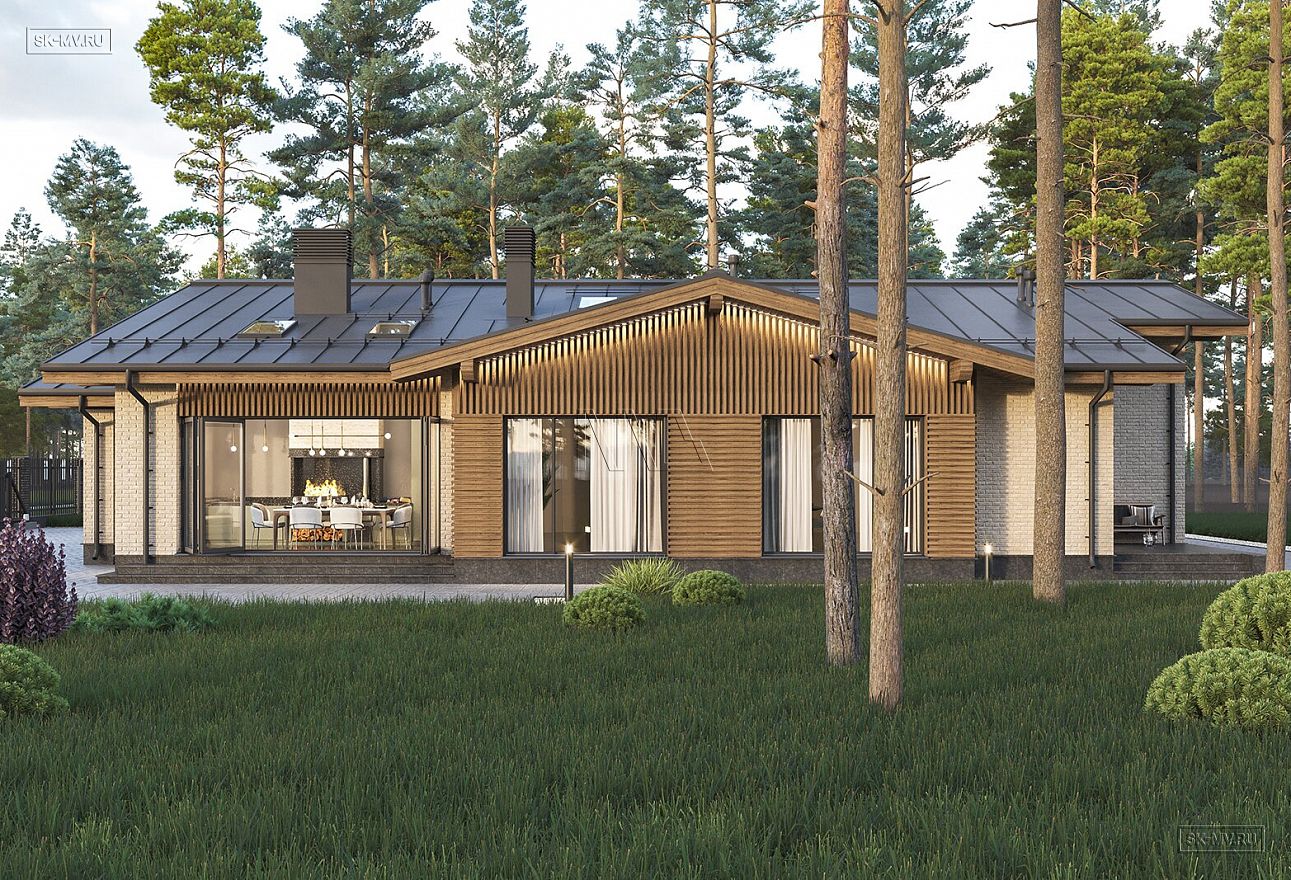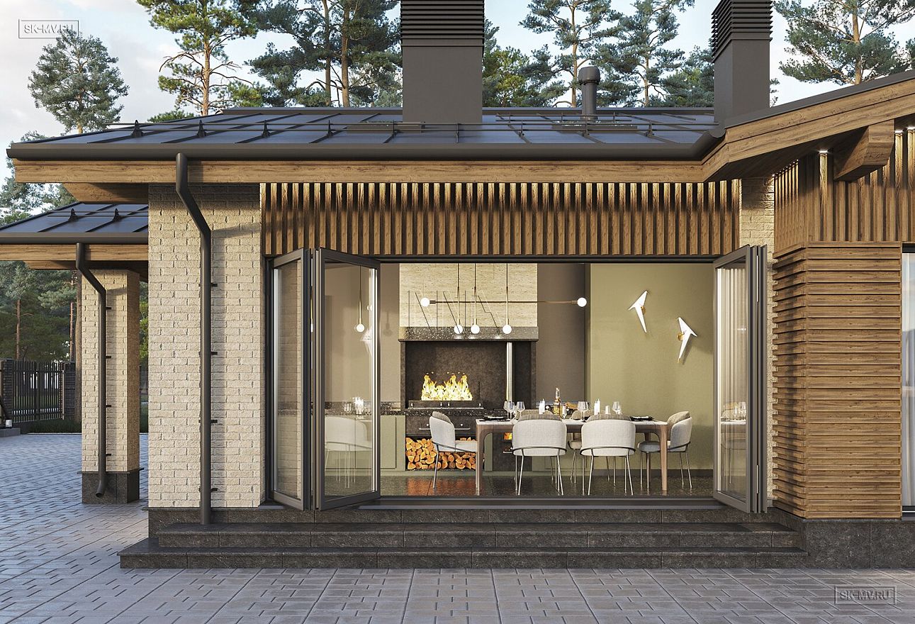 Проект «Рощино 20» — это проект современного одноэтажного загородного дома с четырьмя спальнями и теплой зоной барбекю. Площадь дома — 281,08 кв.м.