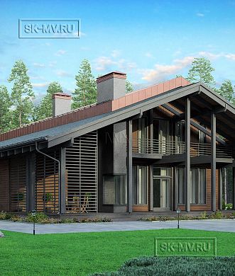 Стропильная система заводского изготовления (доска 45 × 195 мм, сухая, строганная) с применением балок из клееного бруса или бруса LVL.