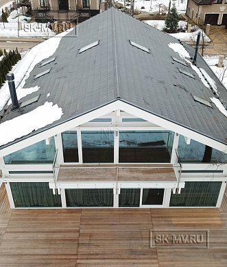Стропильная система заводского изготовления (доска 45 × 195 мм, сухая, строганная) с применением балок из клееного бруса или бруса LVL.