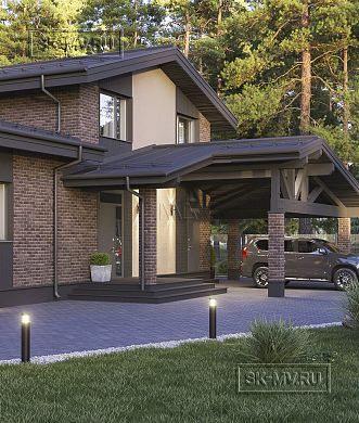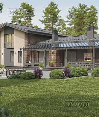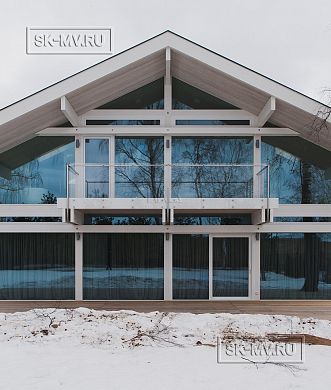 Основной задачей архитектора при проектировании этого дома и расположении его на участке было желание сохранить на участке максимальное количество деревьев.
