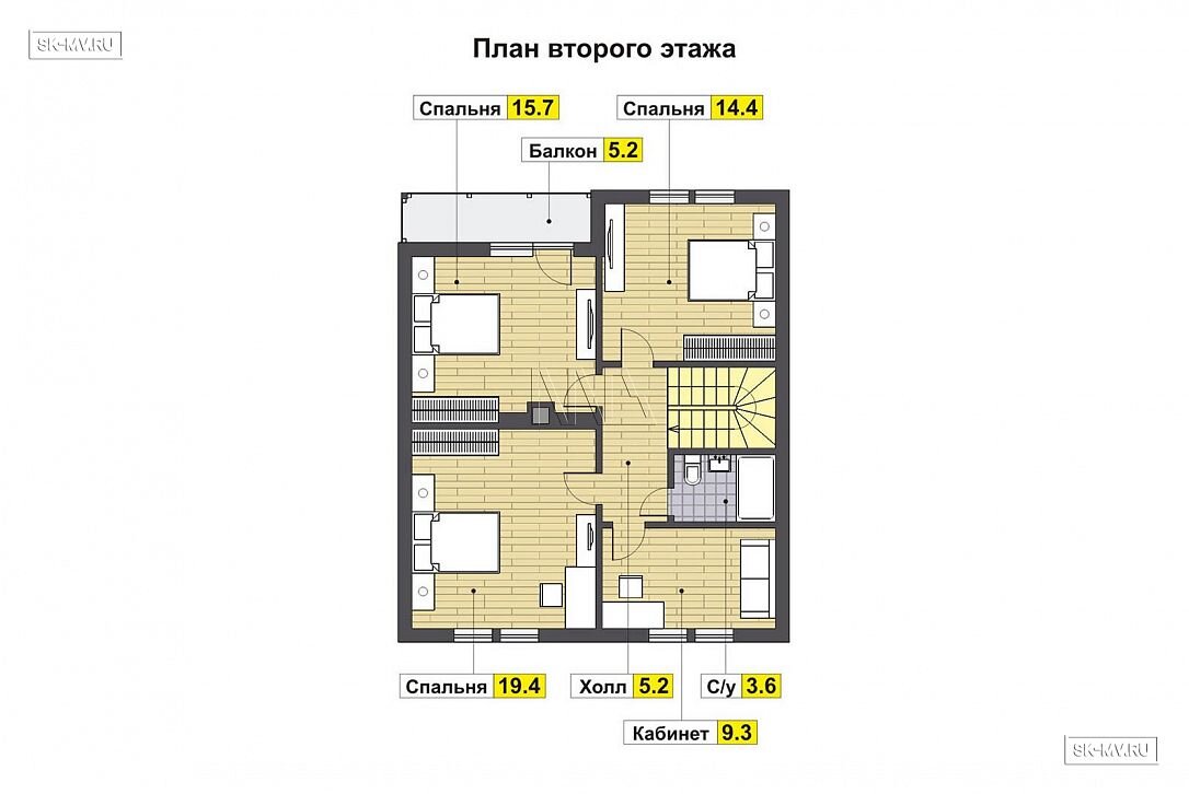 3. Компактный дом с пятью спальнями — очень правильное и удобное решение для большой семьи с детьми. У каждого маленького члена семьи будет своя комната. У родителей есть выбор или самая большая спальня на мансарде или комната поменьше, но с балконом.