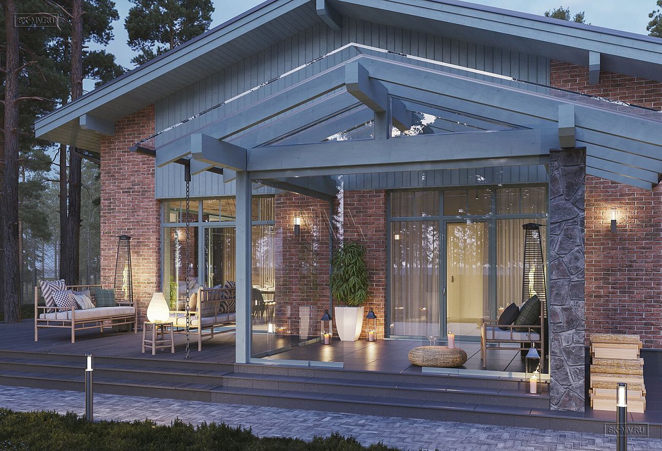 Панировочное решение в этом проекте одно из самых удачных, поскольку на столь небольшой площади предусмотрено казалось бы все, что нужно для комфортной загородной жизни: удобные помещения для хранения, мастерская, теплая зона барбекю, большие площади остекления и т.д.