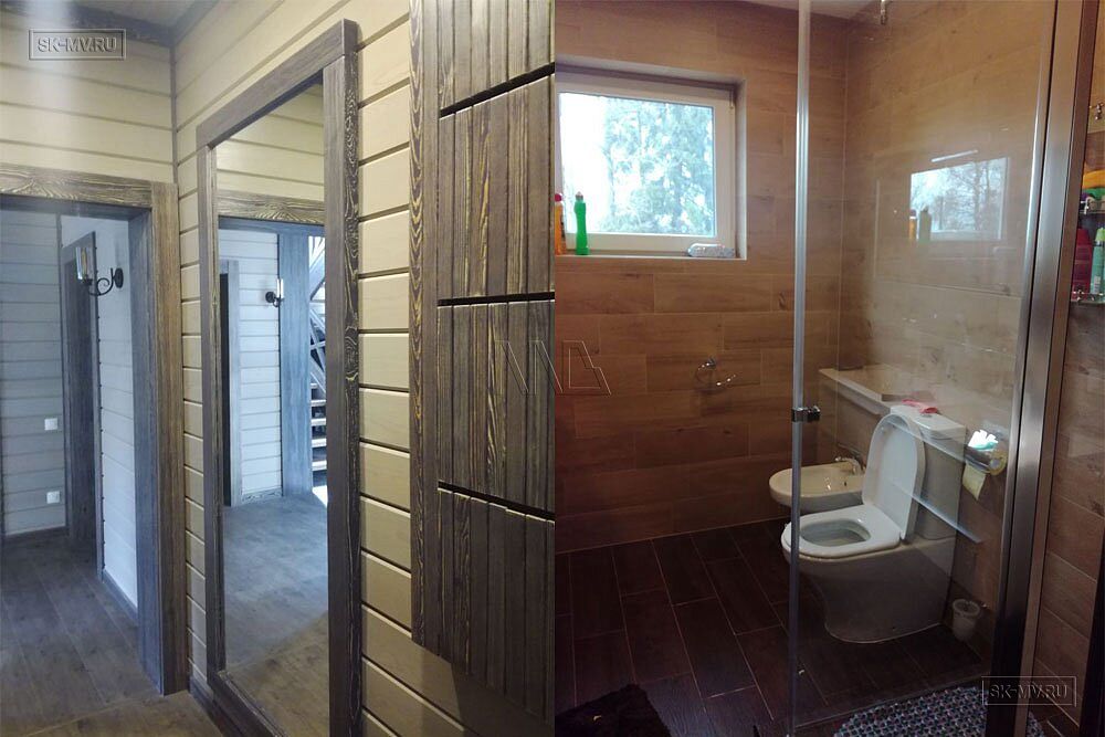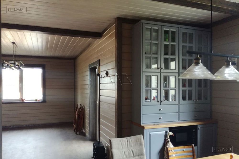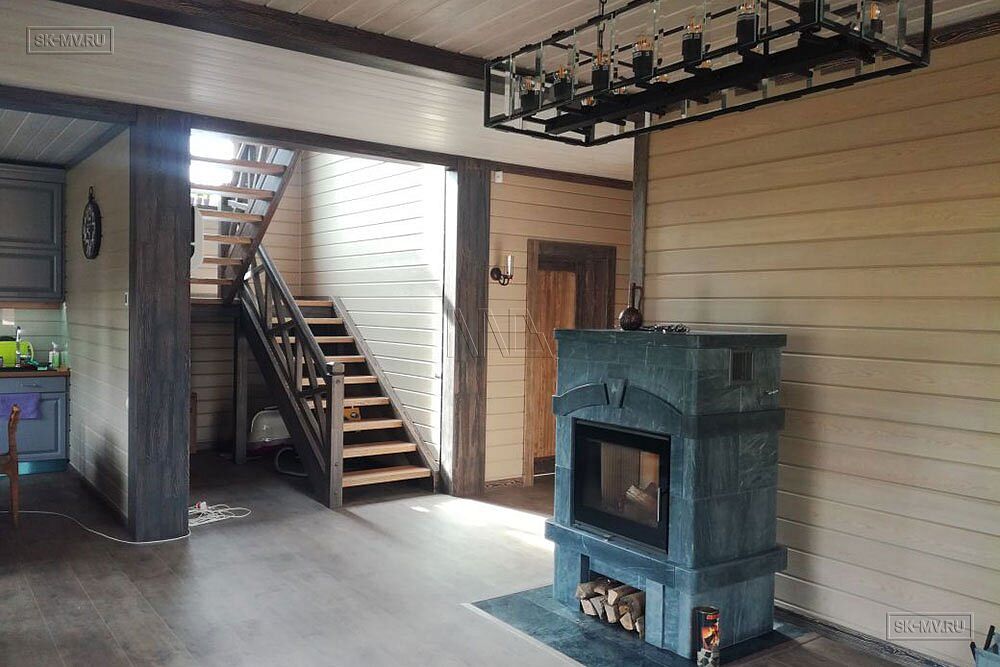 Внутренние несущие стены — каркас из сухой строганной доски 45 × 145 мм.