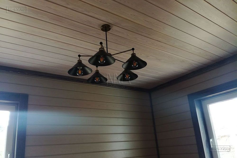 По деревянным балкам — доска 45 × 195 мм, сухая, строганная.