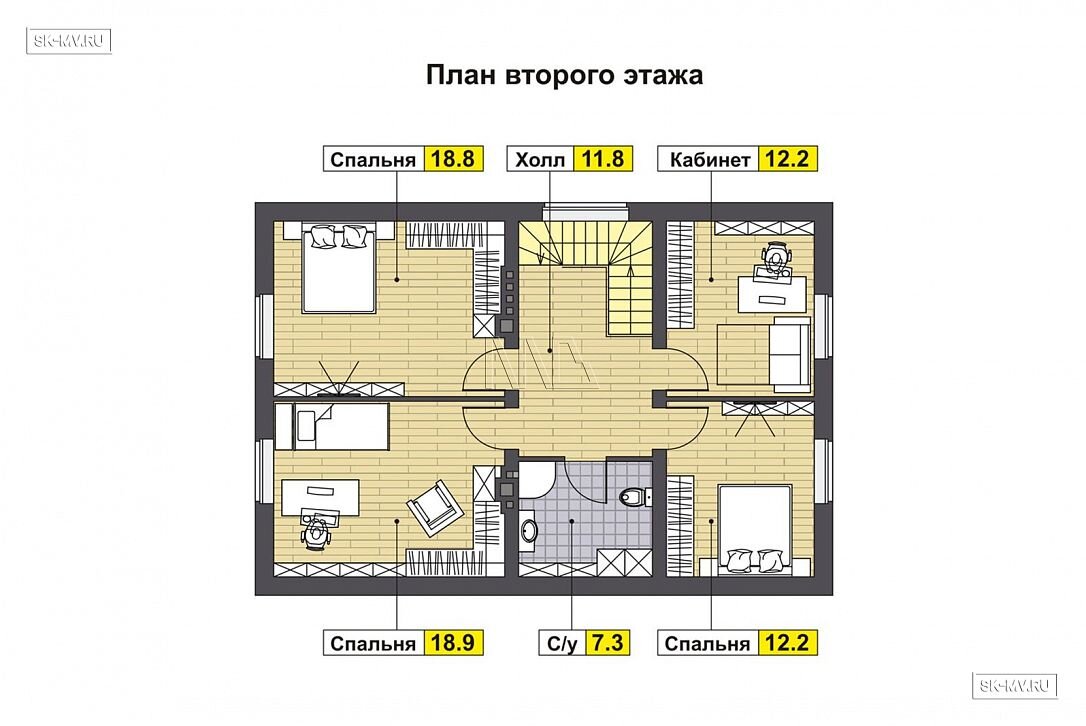 В-восьмых, четыре спальни на втором этаже — две большие и две для детей. Итого шесть спален на площади в 175 кв.м.