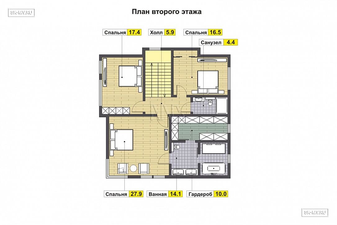 Проект разработан для одного из наших заказчиков, поэтому учитывает индивидуальный сценарий жизни конкретной семьи. Но коттедж получился настолько удачным, что мы, естественно, с разрешения заказчика, включили его в наш каталог готовых проектов современных домов. При заказе строительства под ключ мы с удовольствием адаптируем проект под ваши потребности.