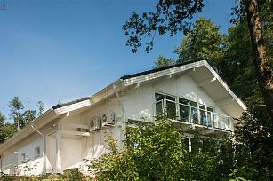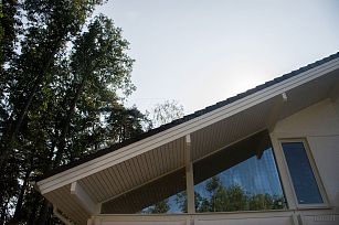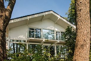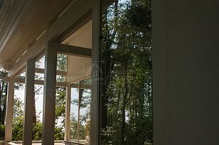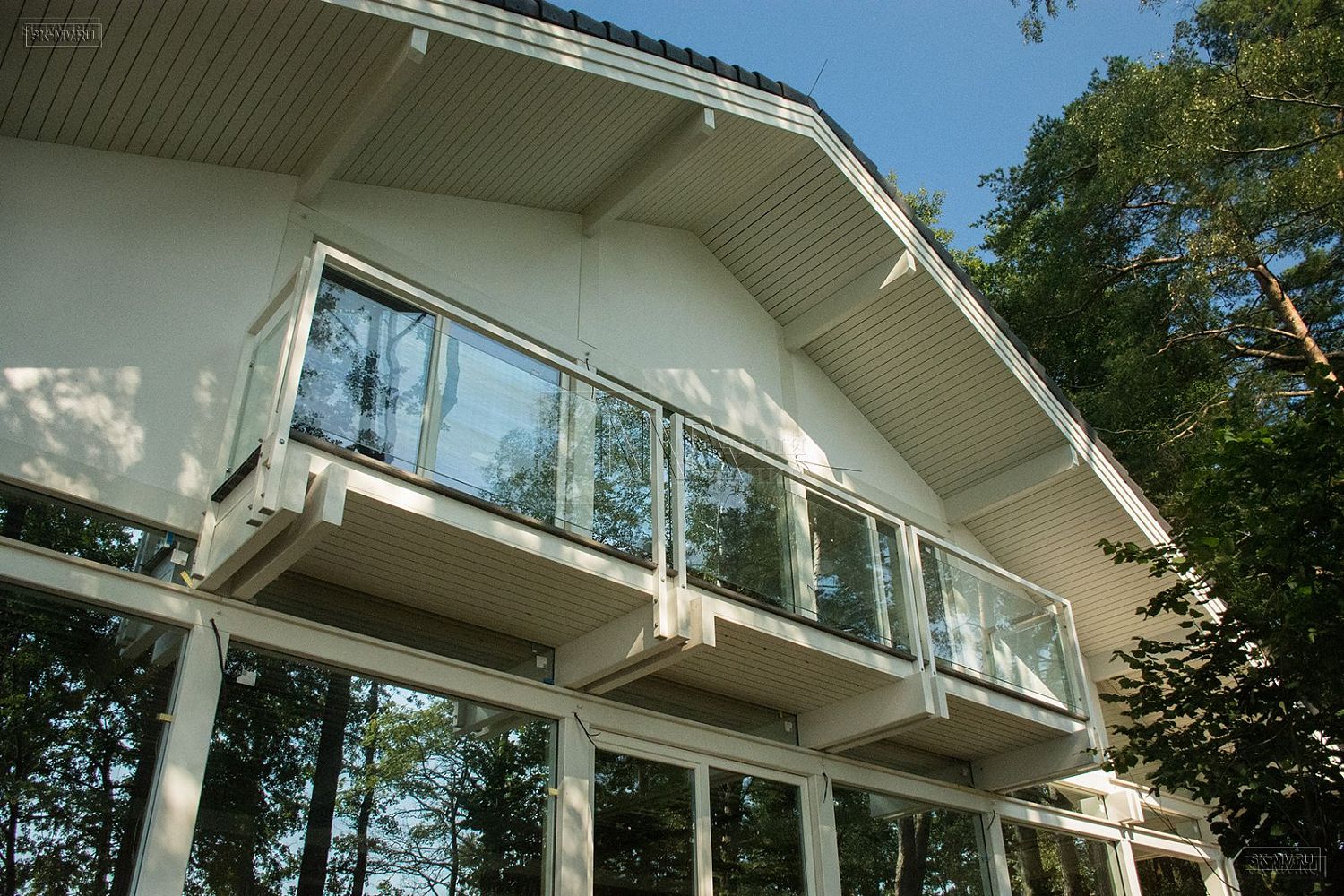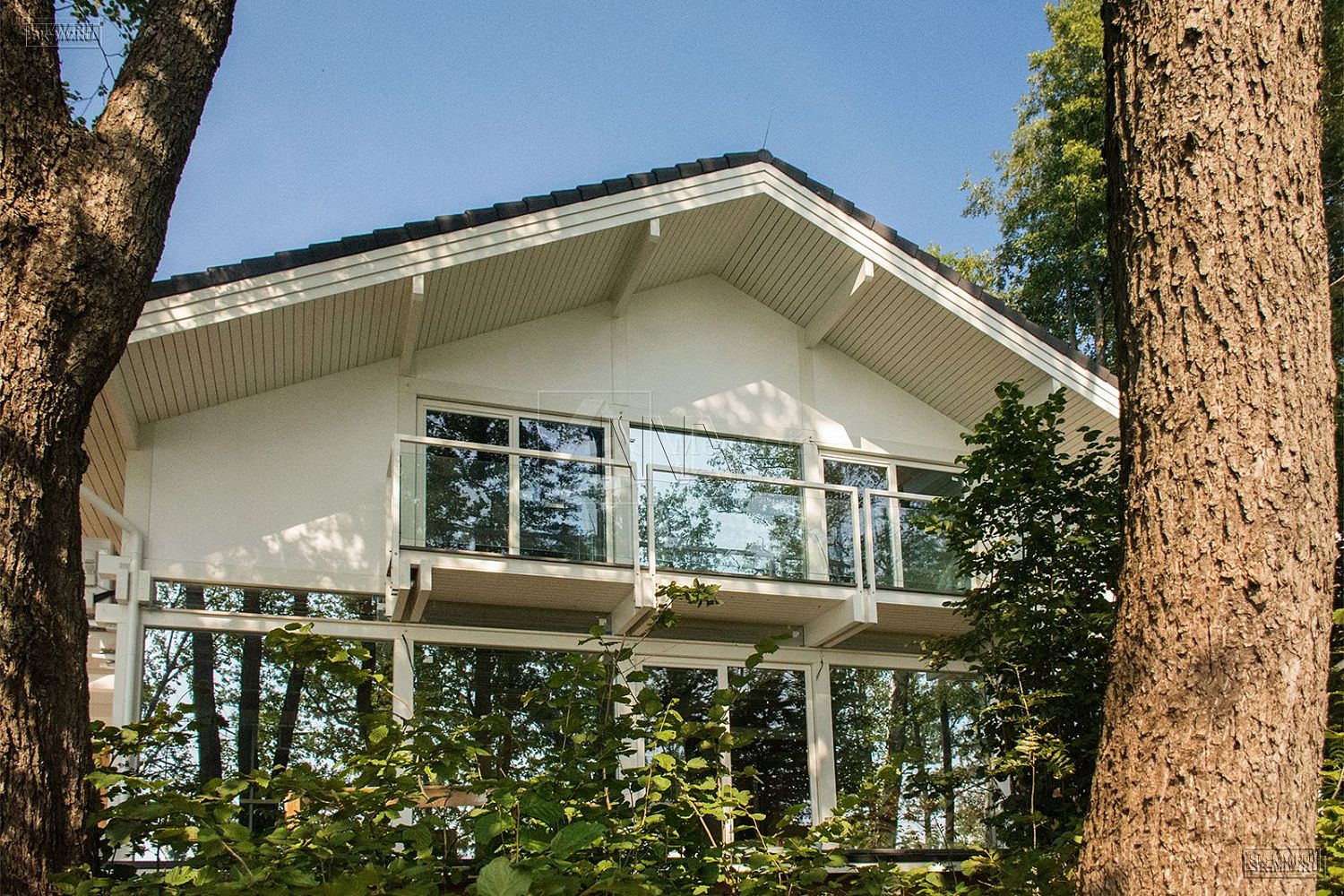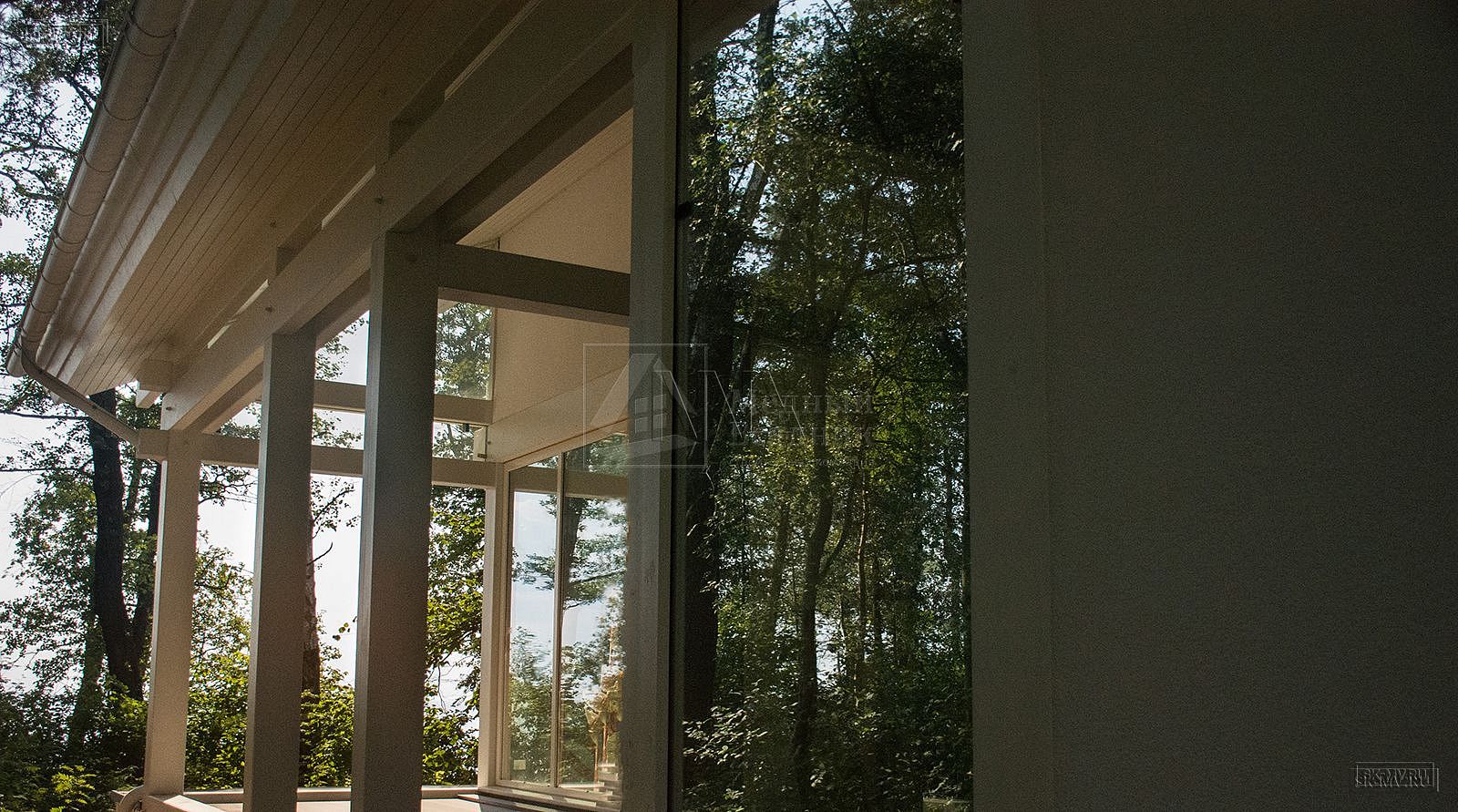 Самая современная тенденция в архитектуре сегодня — безрамное панорамное остекление каркаса фахверкового дома. Направляющие выпиливаются прямо в балках, таким образом, сохраняется геометрия каркаса и максимально разгружается пространство.