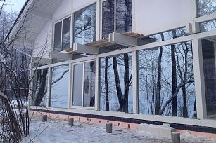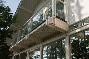 Ограждения террас и балконов выполнены слайдерным остеклением, когда панели-триплексы крепятся с помощью рутелей к слайдеру точечно без использования несущих рам между панелями.