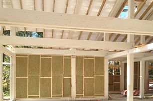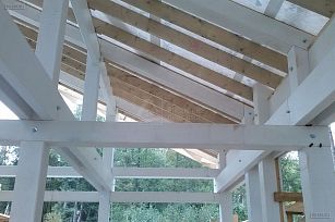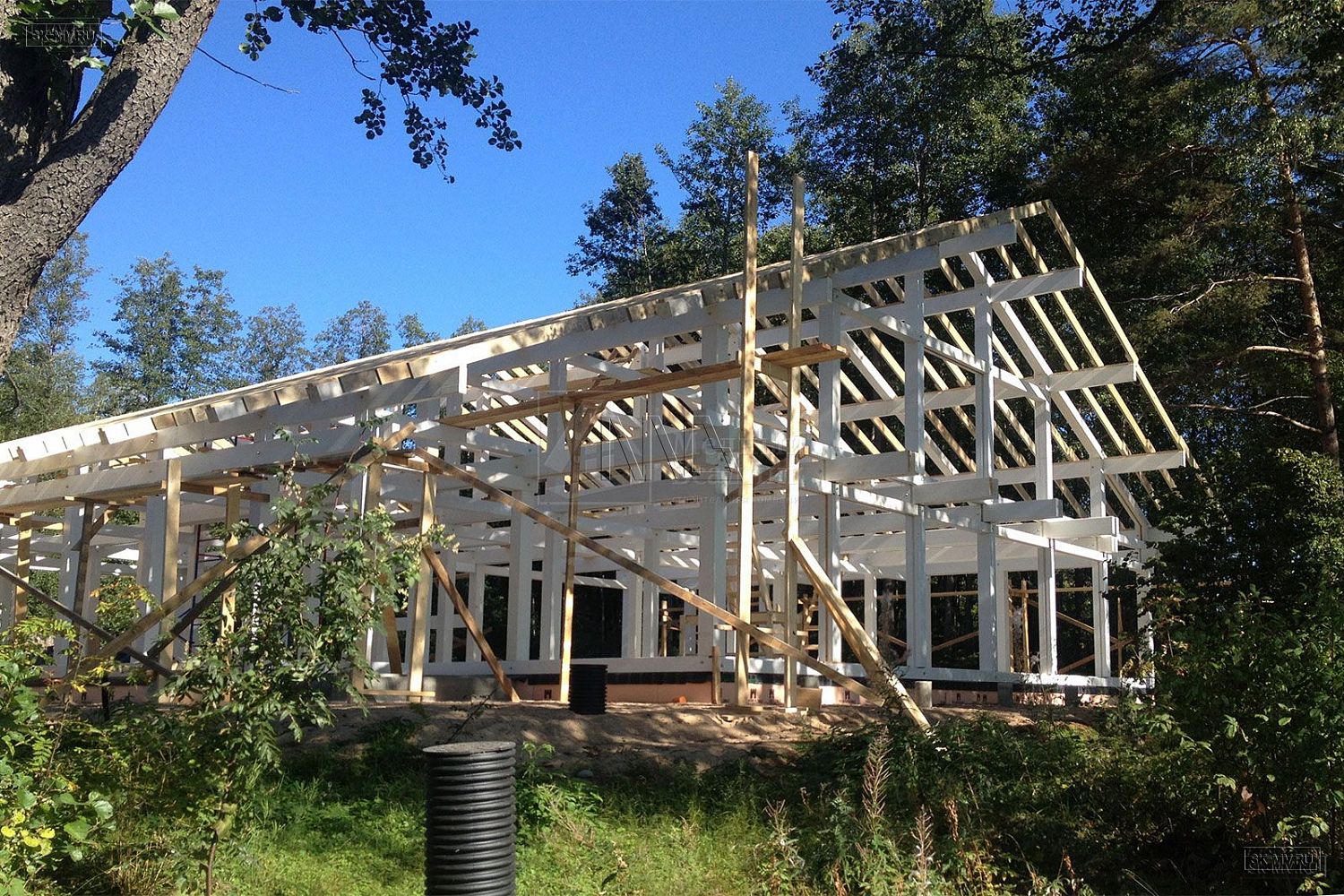 В основе конструкции фахверка — прочный силовой 3D каркас из клееного бруса хвойных пород древесины или LVL-бруса.